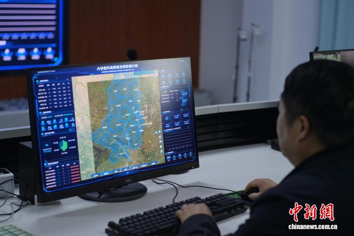 4月14日,六安瓜片茶叶互联网中心,工作人员正通过智能系统查看各个茶园情况。 中新社记者张强摄